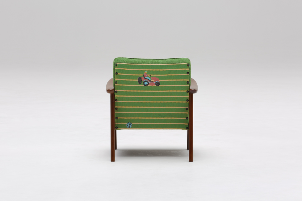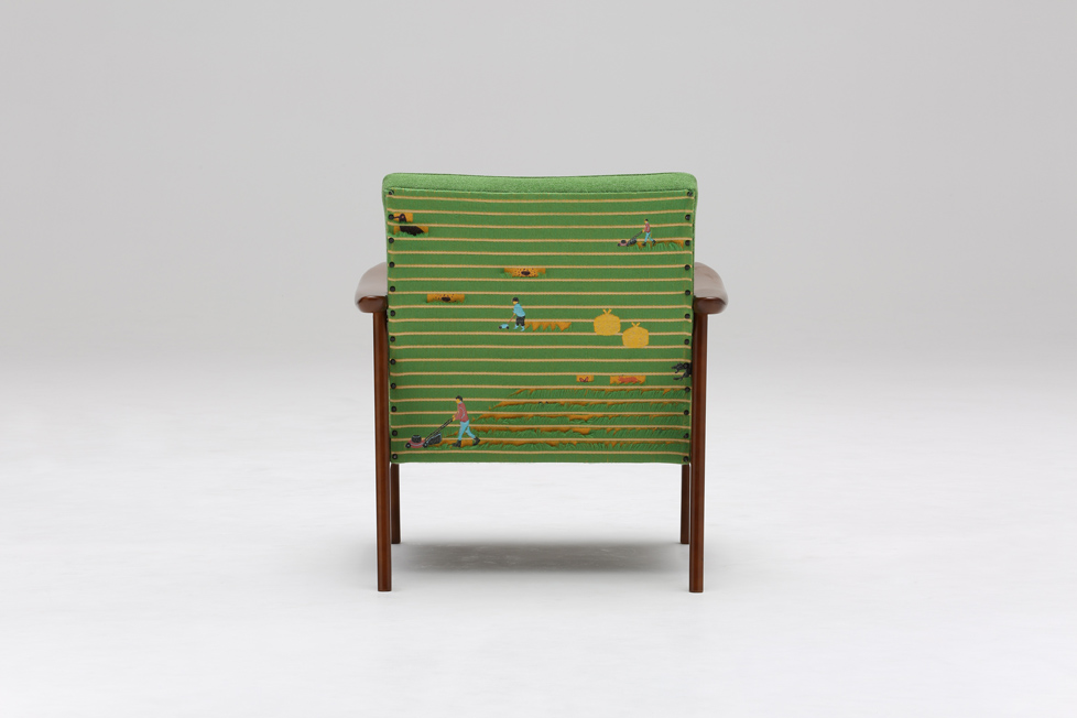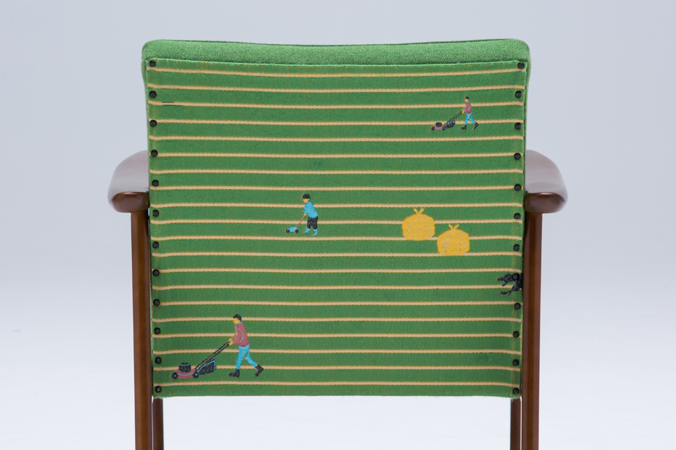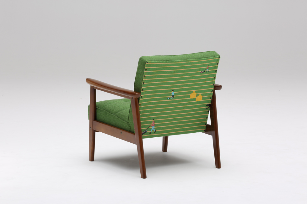 We collaborated with Karimoku60. 家具ブランドカリモク60とのコラボレートモデルとして、SNIP SNAPのSHIBAの生地をKチェアの背面に使っていただきました。